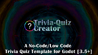 - March 17, 2024 by Tools and Projects#trivia quiz, #godot, #custom software, #desktop apps, #active learningDemo Version WEB: - Create , edit, save user questions and categories. - Limited to 40 custom user questions Full Version [v1.7][$7]: - no user category or question limits - PC-WIN-LINUX, Web export v... Continue reading
